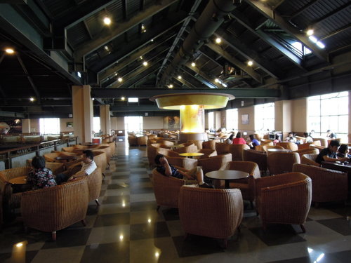 因為除了YB一家三口以外,其他人都沒來酒廠逛過,YB阿公也對威士忌的口感很好奇,想來品嘗看看,所以就在早上排了 這一個行程,YB阿公,阿嬤和舅舅躍躍欲試,想要試喝看看台灣得獎的威士忌口感如何,趁著早上第一場試喝時間,趕快排隊來試喝,他們的評語是威士忌非常的香醇,只是加了冰塊後....好像味道不如純酒的好喝跟香.....我們不是那麼的懂酒.....話雖如此,不過他們反正也喝得粉高興啦.....我們在蒸餾廠走了一圈...本來想聞聞看幾年前來時有聞到的酒桶香.....這是沒在聞到..稍微有點給他小小失望..不過在酒堡樓上吃了好吃的戚風蛋糕和好喝的咖啡也算有點補償囉.....