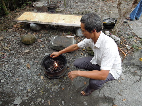 陳大哥今天剛好從友善市集忙完回來,又開始忙著準備烤肉的材料....因為他們家的哥哥晚上還要去上課,所以我們從3:00開始生火準備烤肉,等下他在等待的過程中會再帶我們去果園中摘文旦